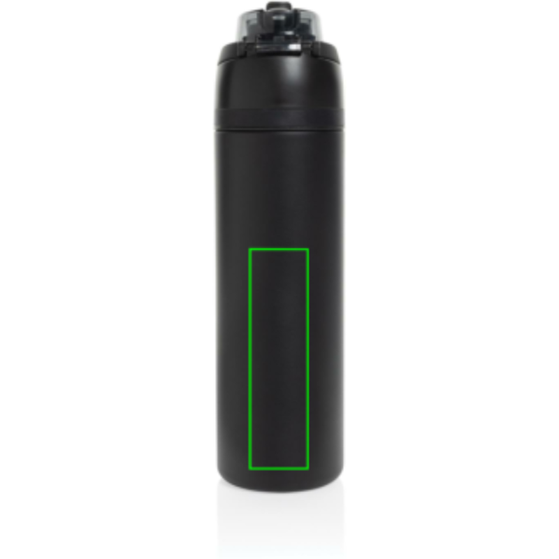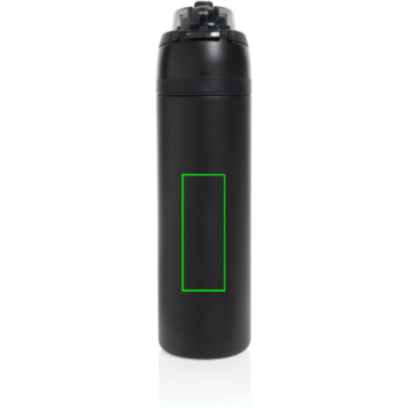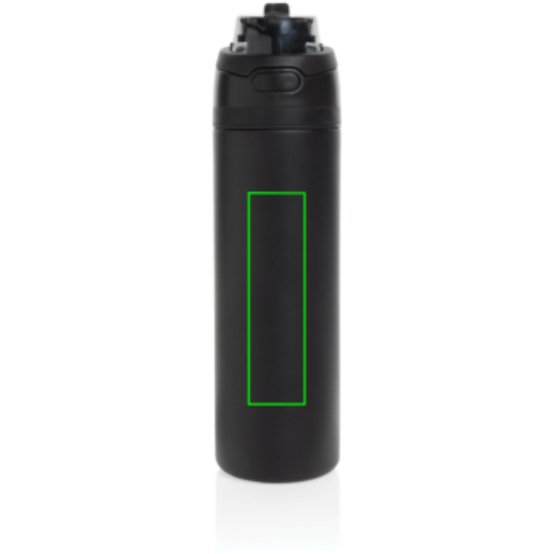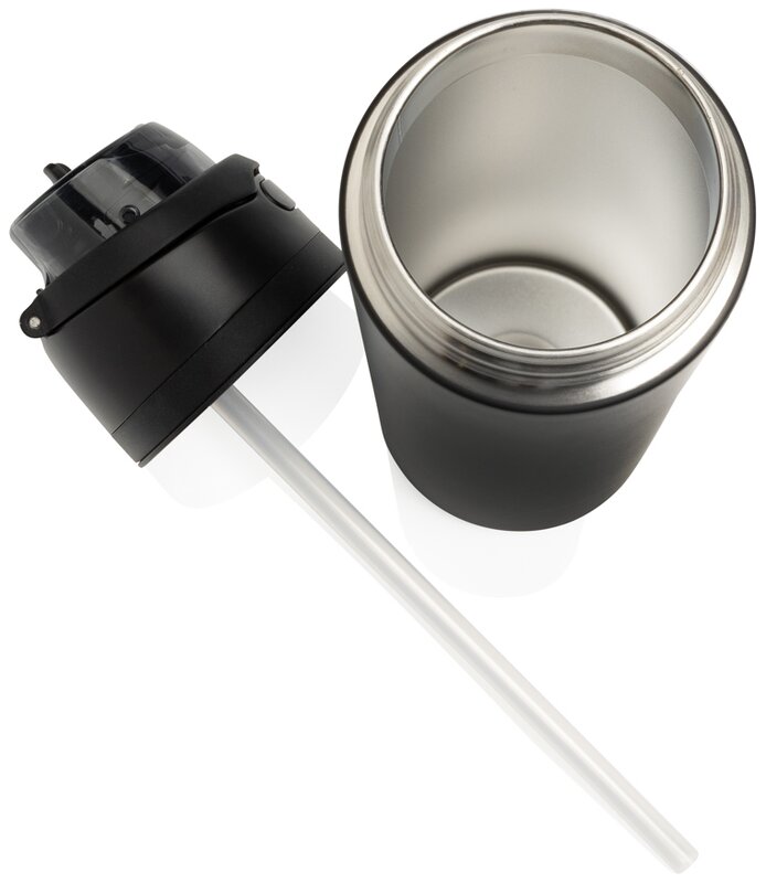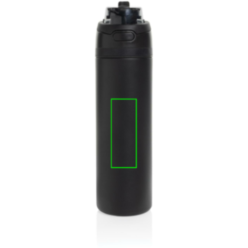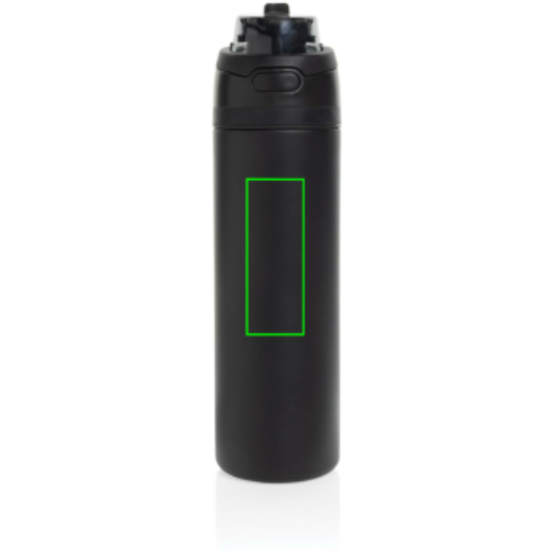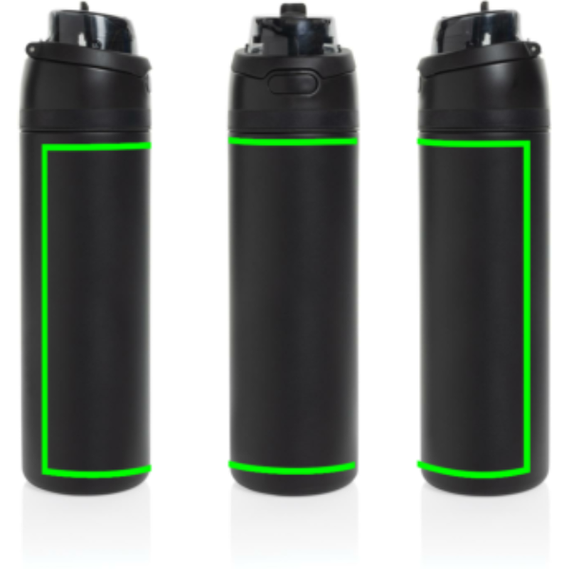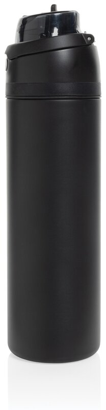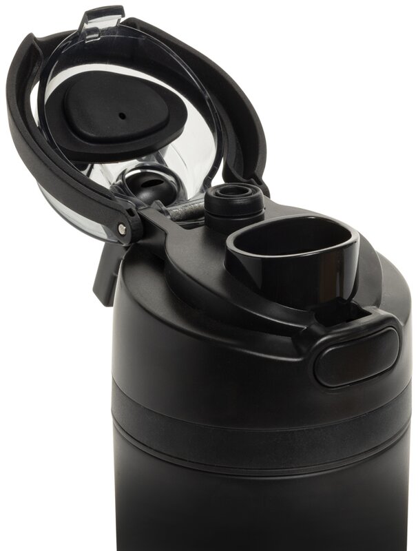 Připravená k akci kdykoli, stačí stisknout tlačítko, aby se uzávěr otevřel, a stisknout zpět dolů, aby se bezpečně uzamklo, čímž se zabrání vniknutí nečistot a bakterií.