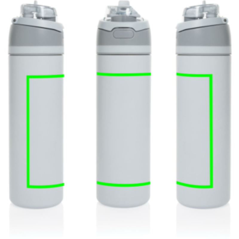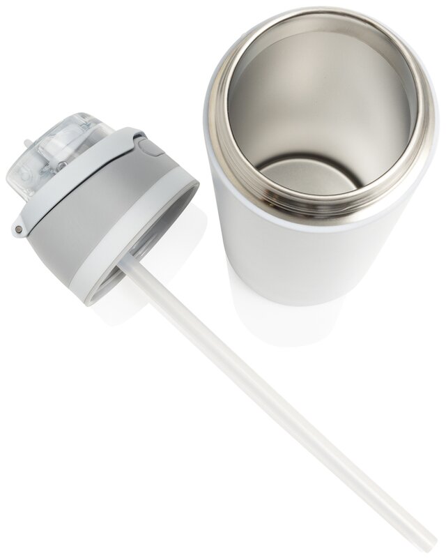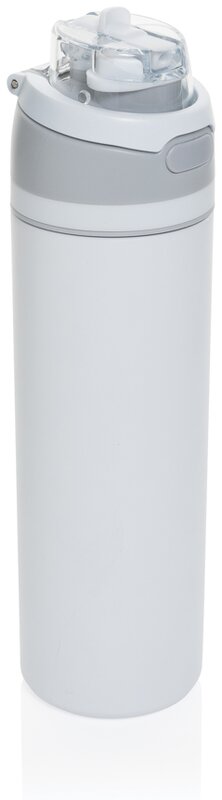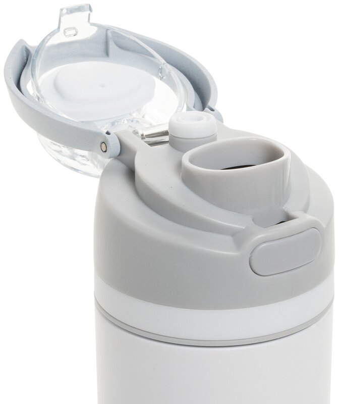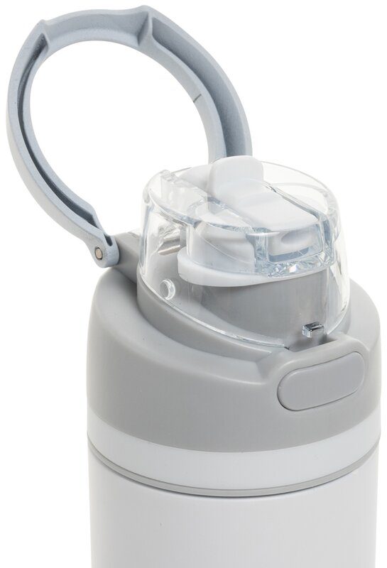 Připravená k akci kdykoli, stačí stisknout tlačítko, aby se uzávěr otevřel, a stisknout zpět dolů, aby se bezpečně uzamklo, čímž se zabrání vniknutí nečistot a bakterií.
