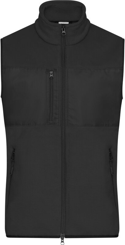 Fleecová vesta s mixem materiálů - polyester fleece, hladký polyester - pro možnost tisku loga. Klasický měkký a snadno udržovatelný fleece z recyklovaného polyesteru. Vsadka s tkané látky s náprsní kapsou. 2 boční kapsy, 1 náprsní kapsa na zip. Uvnitř dvě kapsy. Dvoucestný zip. Kvalitní značkové zipy - YKK