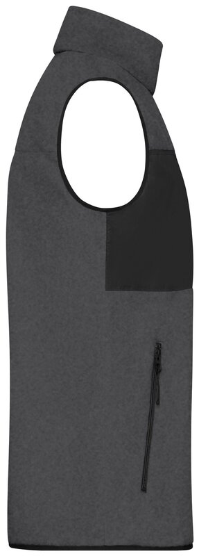 Fleecová vesta s mixem materiálů - polyester fleece, hladký polyester - pro možnost tisku loga. Klasický měkký a snadno udržovatelný fleece z recyklovaného polyesteru. Vsadka s tkané látky s náprsní kapsou. 2 boční kapsy, 1 náprsní kapsa na zip. Uvnitř dvě kapsy. Dvoucestný zip. Kvalitní značkové zipy - YKK