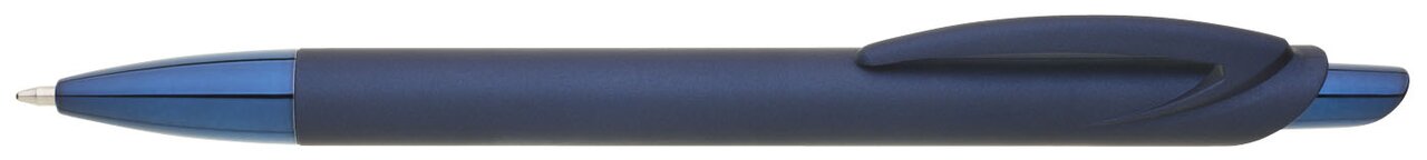 Plastové metalické tělo doplňují lesklé barevné doplňky. Velkoobsahová gelová náplň, modře píšící.