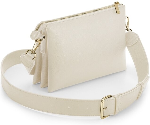 Kabelka přes rameno BOUTIQUE s koženým vzhledem a měkkou podšívkou. Hlavní kapsa s pozlaceným kovovým zipem. Odnímatelný nastavitelný ramenní popruh, kompatibilní s BG765. Vnitřní kapsa na cennosti na zip. Materiál: 100% polyuretan. Rozměry: 23 x 3,5 x 16 cm.