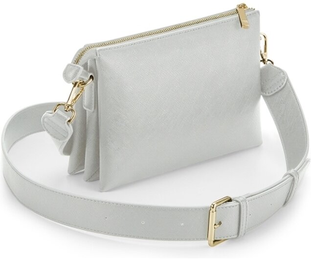 Kabelka přes rameno BOUTIQUE s koženým vzhledem a měkkou podšívkou. Hlavní kapsa s pozlaceným kovovým zipem. Odnímatelný nastavitelný ramenní popruh, kompatibilní s BG765. Vnitřní kapsa na cennosti na zip. Materiál: 100% polyuretan. Rozměry: 23 x 3,5 x 16 cm.