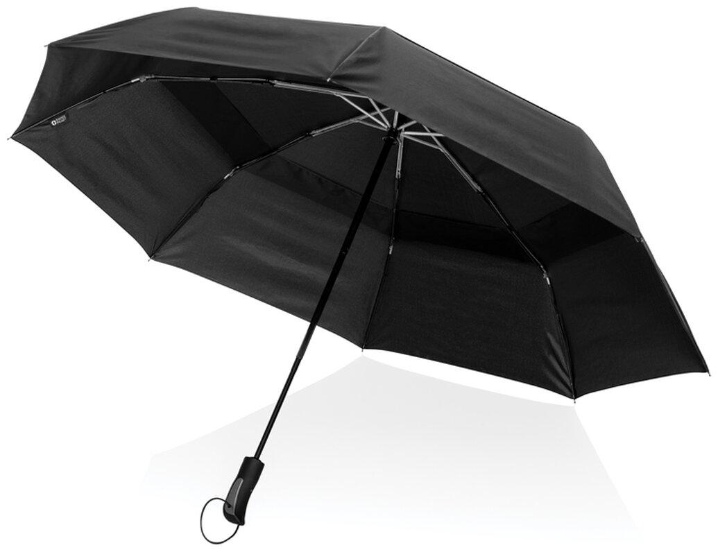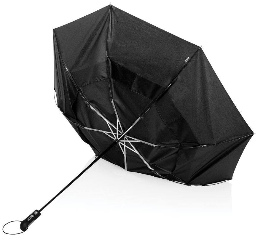 Deštník Tornado od značky Swiss Peak je ve složeném stavu dostatečně kompaktní, aby se vešel do kapsy. Po rozložení však dosahuje překvapivé velikosti 27", díky čemuž je vhodný i pro 2 osoby. Obsahuje automatické otevírání i zavírání rozdělené na tři sekce. Kostra je vyrobena z hliníku, žebra ze sklolaminátu odolným i proti silnému větru a deštník je ze 190T RPET. Deštník je z recyklovaného polyesteru včetně skenovatelné složky AWARE™ garantující obsah recyklátu. Na výrobu bylo využito 11,7 500ml PET lahví a bylo uspořeno 7 litrů vody. Z výtěžku každého prodaného produktu z kolekce Impact je navíc přispěno 2 % na podporu iniciativy Water.org.