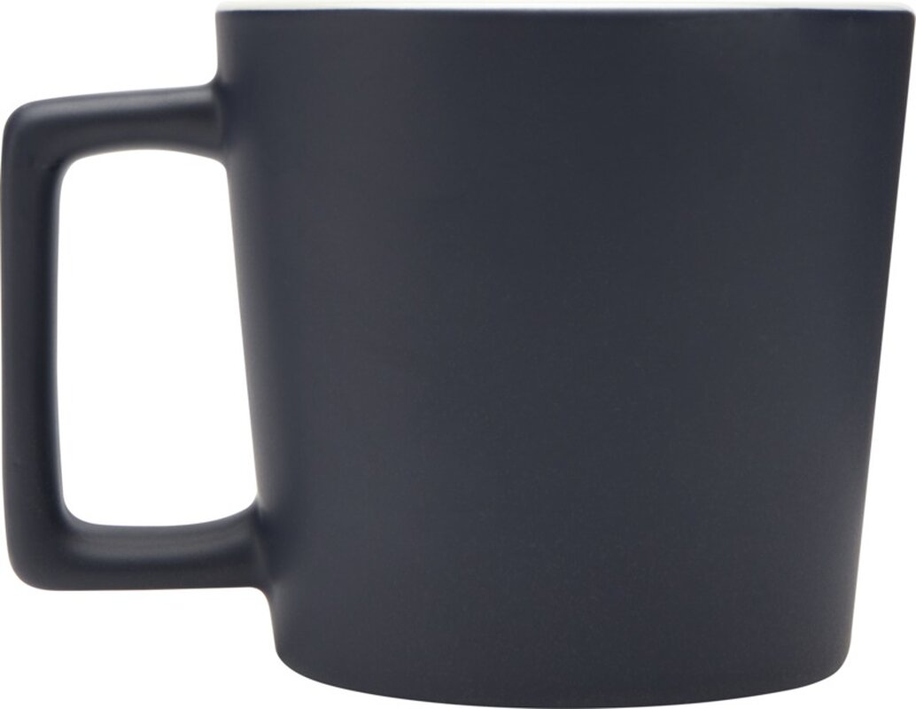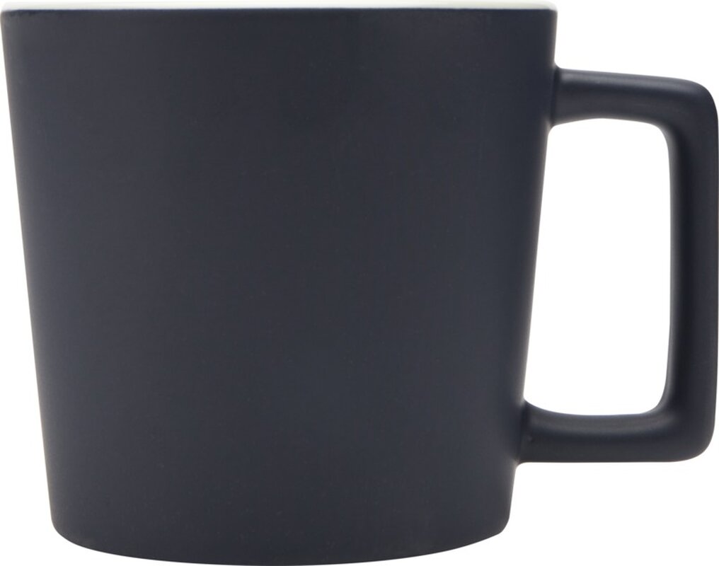 Keramický hrnek s moderním designem a matným povrchem. Objem je 370 ml. Lze mýt v myčce na nádobí - 125 mycích programů i na tampontisk (platí pro všechny metody zdobení). Dodává se v dárkové krabičce z recyklované lepenky.
