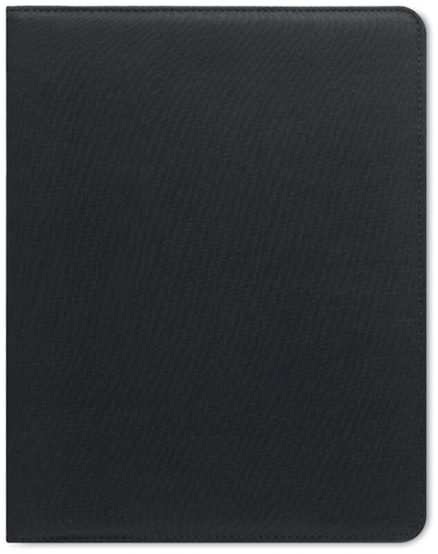 Desky o velikosti A4 z dvoubarevného materiálu 300D RPET. Obsahuje vnitřní přihrádky a poutko na pero. Včetně linkovaného poznámkového bloku na 20 listů. Desky jsou vyrobeny z recyklovaného PET materiálu.