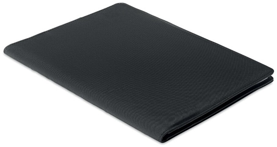 Desky o velikosti A4 z dvoubarevného materiálu 300D RPET. Obsahuje vnitřní přihrádky a poutko na pero. Včetně linkovaného poznámkového bloku na 20 listů. Desky jsou vyrobeny z recyklovaného PET materiálu.