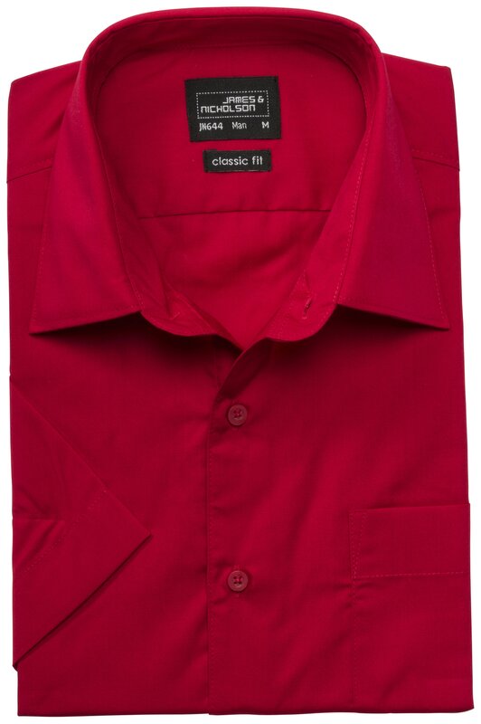 Klasická košile, vyrobená z odolných materiálů. Easy-care úprava, popelín, lze prát na 60°C. Krátký rukáv. Náprsní kapsa. 5/4 (ks v jednom sáčku / celkem ks v kartonu).