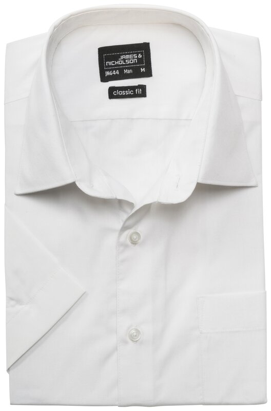 Klasická košile, vyrobená z odolných materiálů. Easy-care úprava, popelín, lze prát na 60°C. Krátký rukáv. Náprsní kapsa. 5/4 (ks v jednom sáčku / celkem ks v kartonu).