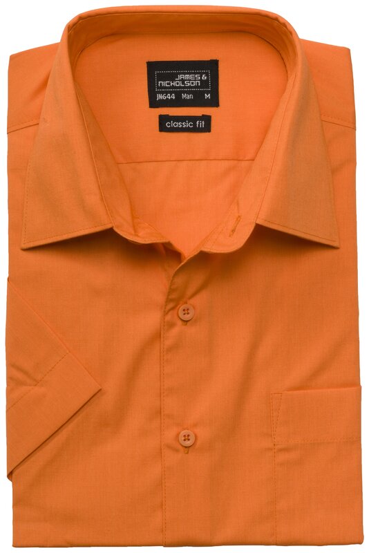 Klasická košile, vyrobená z odolných materiálů. Easy-care úprava, popelín, lze prát na 60°C. Krátký rukáv. Náprsní kapsa. 5/4 (ks v jednom sáčku / celkem ks v kartonu).
