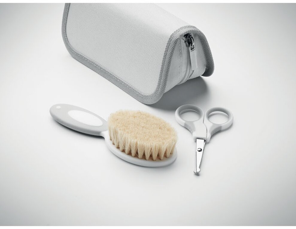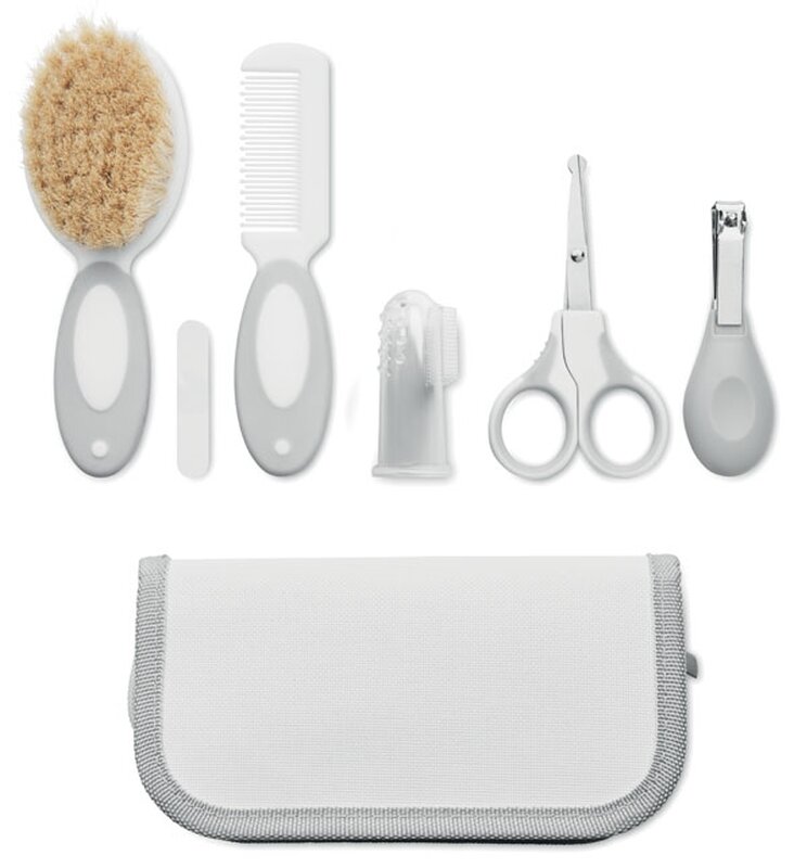 Praktická 6dílná sada pro péči o mininko obsahuje: jemný kartáč, dětský hřeben, odsávačku do nosu, pilník na nehty, kleštičky na nehty a nůžky.