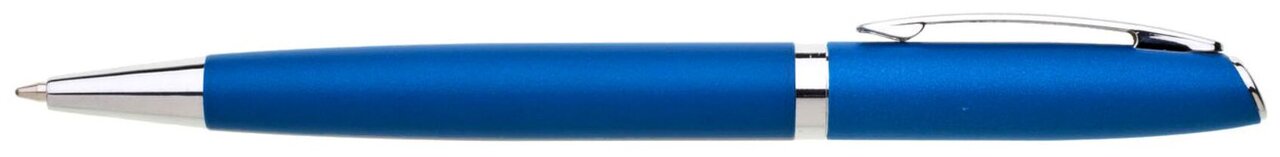 Hliníková propiska TORICO s otočným mechanismem v barvě matně modré a stříbrnými doplňky. Náplň velkoobsahová, modře píšící.