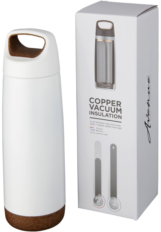 Sportovní měděná lahev s vakuovanou izolací má dvojitou stěnu z nerezové oceli a měděnou izolací, díky které zůstnanou nápoje chladné nebo horké. Lahev díky konstrukci nekondenzuje vlhkost, víke je šroubovací s korkovým zdobením a dno lahve má protiskluzovou úpravu. Lahev dodáváme v dárkové krabičce.