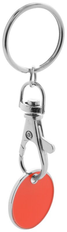 Kovový přívěšek na klíče se žetonem do nákupního košíku.