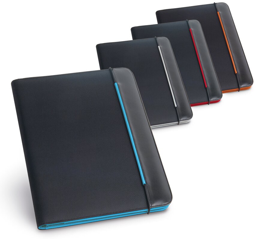 Složka na dokumenty s koženkovými deskami v několika barevných variantách s poutkem na propisku a kapsičkami na vizitky. Vnitřní část je z mikrovlákna.