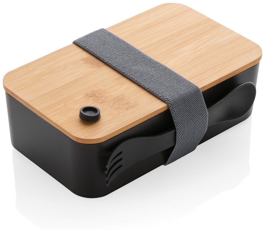 Praktická krabička s objemem 1,4 l na jídlo pro každodenní použití. Krabička (bez víka) je vhodná do myčky nádobí i mikrovlnné trouby. Obsahuje elastickou gumičku a příbor 3 v 1. Produkt je zabalen v FSC® kraftové dárkové krabičce. Krabička je vyrobená z RCS recyklovaného PP plastu. Celkový podíl recyklátu dle váhy produktu: 44 %. Víko vyrobeno z přírodního bambusu.