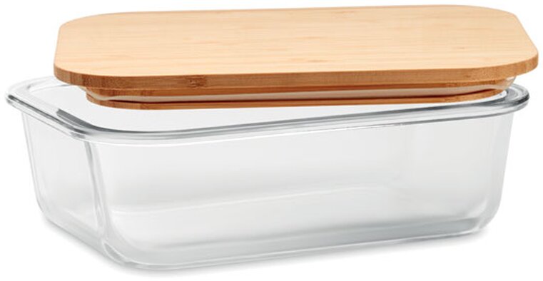 Skleněný box na jídlo s víkem z bambusu a silikonovým těsněním. Objem 900 ml. Bambus je přírodní materiál, barevnost a povrch jednotlivých produktů se může lišit.