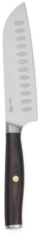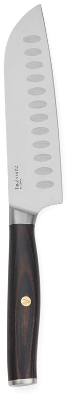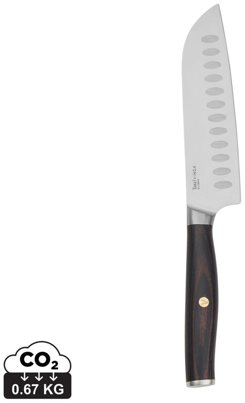 Nůž Tara santoku je vyrobený z recyklované nerezové oceli s certifikací RCS. Čepel nože santoku je s vroubkami, což přináší hladší řezání a krájení. Nůž je vyroben z vysoce kvalitní nerezové oceli a může se pochlubit výjimečnou odolností a výkonem. Krásná rukojeť pakkawood poskytuje pohodlné a bezpečné uchopení. Velikost nože: 25,6 cm (čepel 14 cm). RCS certifikace zajišťuje garanci použití recyklovaného materiálu díky transparentnímu přehledu nad dodavatelským řetězcem. Tento produkt obsahuje 24 % recyklované nerezové oceli s certifikací RCS.