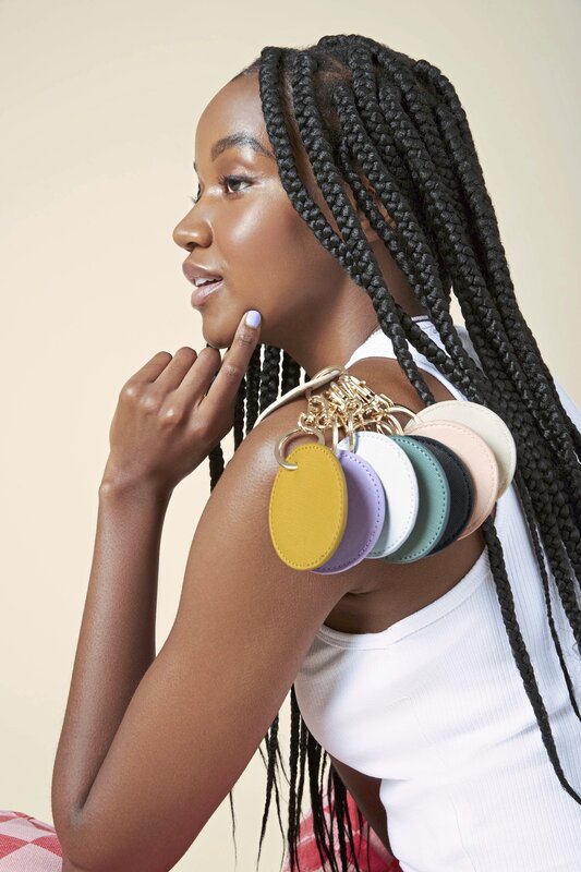 Kulatá klíčenka z kolekce BOUTIQUE s elegantním vzhledem a lesklou kovovou sponou. Lze použít jako přívěsek na klíče nebo přívěsek na zavazadla. Materiál: 100% polyuretan. Průměr: Ø 7 cm.