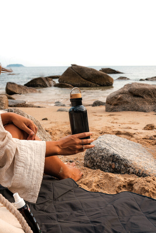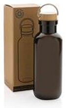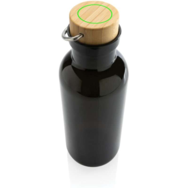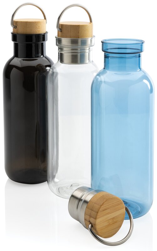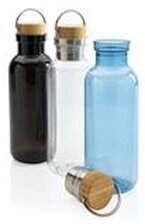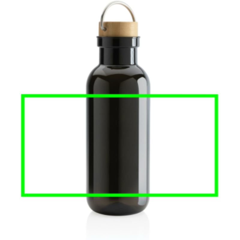 Nepropustná lahev na vodu s objemem 680ml, se stylovým bambusovým uzávěrem a praktickým madlem. Je určena pouze pro studené nápoje a pro ruční mytí. Tělo lahve je vyrobené z GRS recyklovaného PET plastu. Podíl použitého recyklovaného materiálu vzhledem k celkové váze produktu: 56 %. Bambusový uzávěr s FSC certifikací. Bez BPA. Produkt je zabalen v FSC kraftové krabičce.