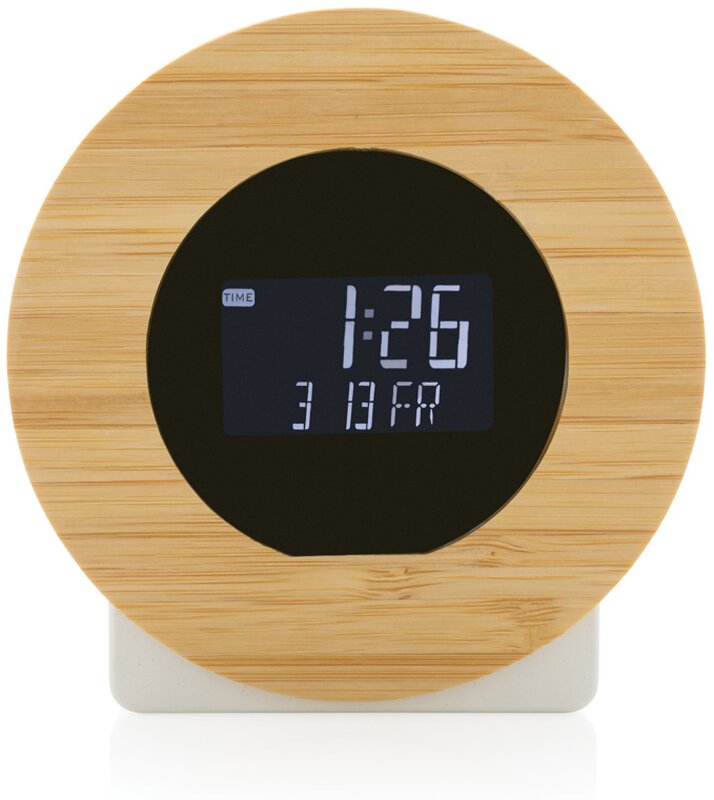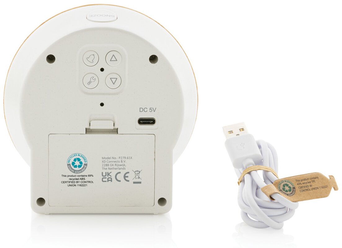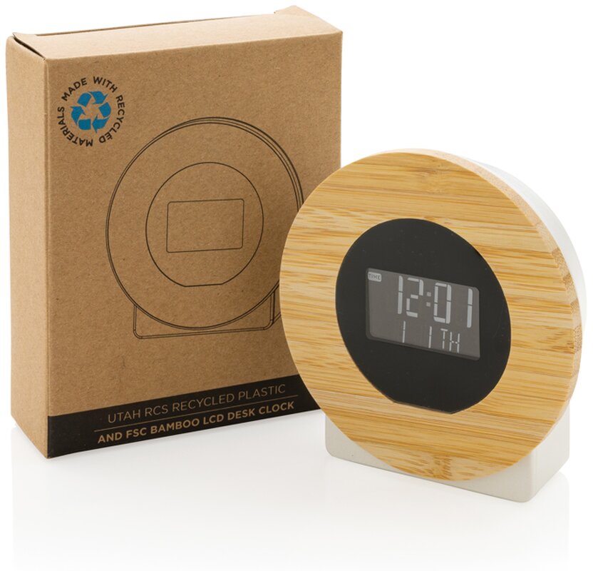 Stylové stolní hodiny s LCD displejem s funkcí času a budíku. Vyrobeno z RCS recyklovaného ABS plastu a FSC® bambusu. RCS (Recycled Claim Standard) je globální standard, který umožňuje ověřit použití recyklovaného materiálu v produktu napříč celým dodavatelským řetězcem. V balení naleznete 100 cm USB C nabíjecí kabel z RCS recyklovaného TPE. Zabaleno v FSC® dárkové krabičce.