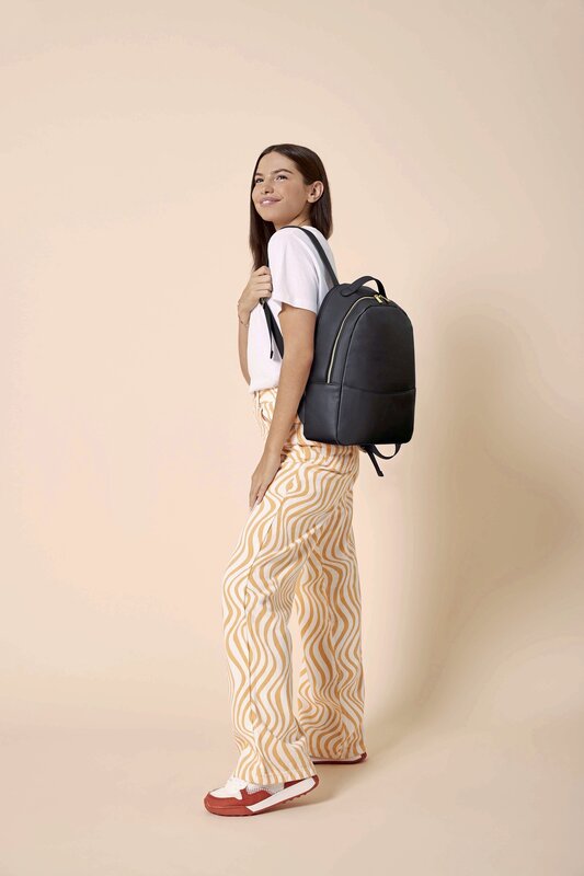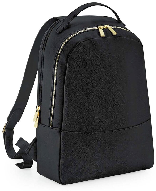 Luxusní a hlavně praktický batoh z kolekce BOUTIQUE s koženým vzhledem. Batoh obsahuje vnitřní organizační kapsu (na telefon, propisku, platební karty atd.), vnitřní poutko na láhev s vodou a vnitřní kapsu na zip, polstrovanou přihrádku na notebook ( kompatibilní až do 14"), nastavitelné ramenní popruhy a popruh na navlíknutí batohu na kufr. Pozlacené kovové zipy s vysokým leskem. Materiál: 100% polyuretan. Rozměry: 30 x 41 x 11 cm.