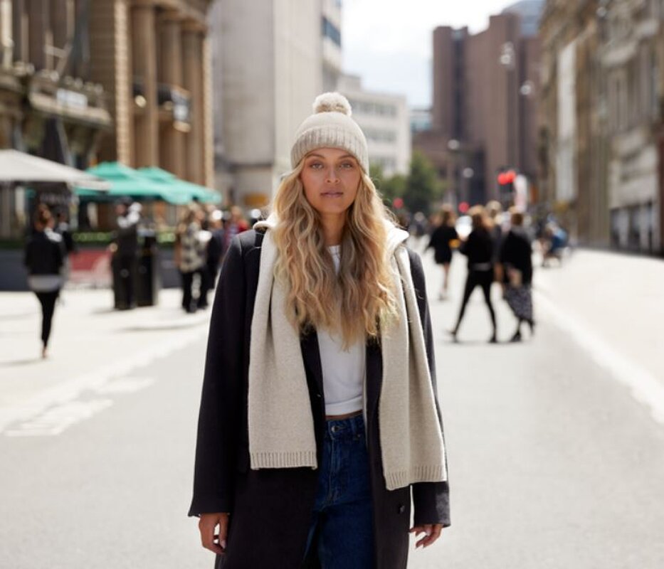 Luxusní dvoudílná pletená sada - šály a čepice s bambulí. Jednovrstvý úplet měkké na dotek. Materiál: 50% viskóza / 30% polyester / 20% nylon. Doporučujeme ruční praní.