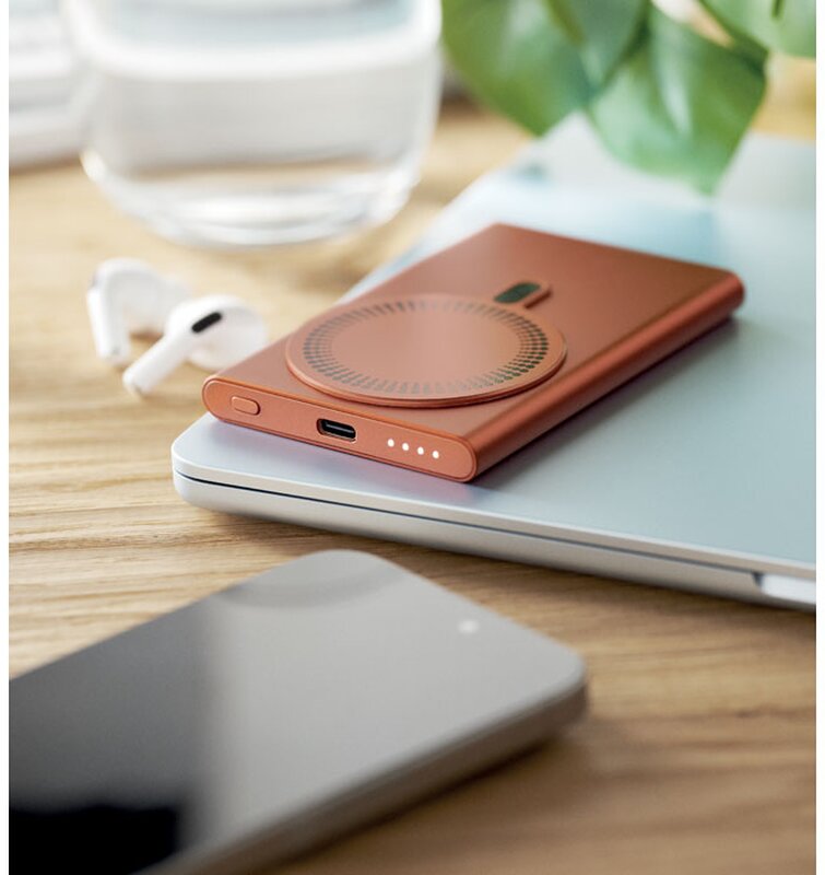 Magnetická bezdrátová nabíječka (15W) a powerbanka (5000 mAh) Oranžová 052.054