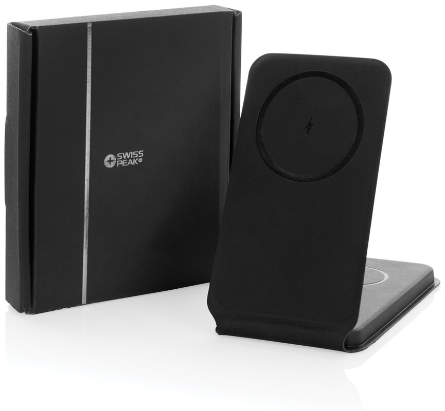 Magnetická bezdrátová nabíječka 3v1 Swiss Peak 15W z RCS PU Černá 037.324