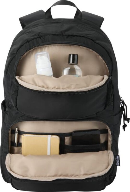 Moderní batoh Puffer na notebook o velikosti 15,6″ kombinuje špičkové recyklované materiály s certifikací GRS s praktickými funkcemi pro každodenní využití. Je vyroben z voděodolného materiálu a jeho 18litrový objem. Ideální na dojíždění, do školy nebo na cestování.
