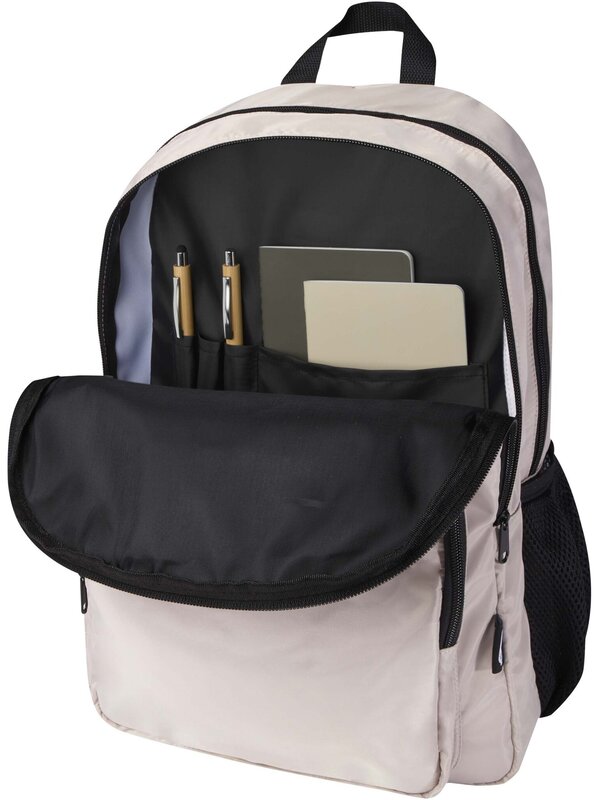 Batoh Trend Plus je vyroben z recyklované měkké a nemačkavé tkaniny s certifikací GRS a kvalitní podšívky z RPET. Batoh má přihrádku na 15” notebook, organizační přihrádku, přední kapsy na zip, boční elastické síťované kapsy a záda ze vzdušné síťoviny s popruhem pro upevnění na kufr na kolečkách. Nastavitelné ramenní popruhy pro optimální pohodlí při nošení. Objemová kapacita: 20 litrů. Nosnost do 10 kg. Neobsahuje PVC.