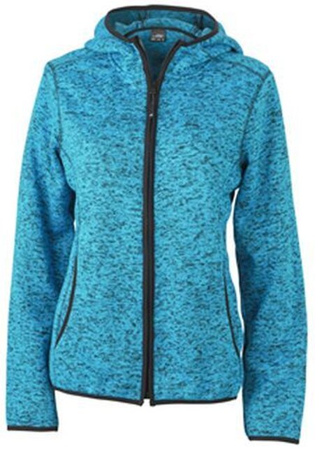 Dámská mikina James & Nicholson L s kapucí z pleteného fleecu v melírovaném vzhledu. Vnější materiál: 100% Polyester - hladký, teplý, snadno udržovatelný materiál. Vnější strana v pleteném vzhledu, uvnitř zdrsněný. Bunda je měkká a nadýchaná. Má slim-fit dělící švy, kapuci, kontrastní manžety, 2 kapsy vpředu, vypasovaný střih. Gramáž je 320 g/m². Balení: 1/30 (ks v jednom sáčku / celkem ks v kartonu).