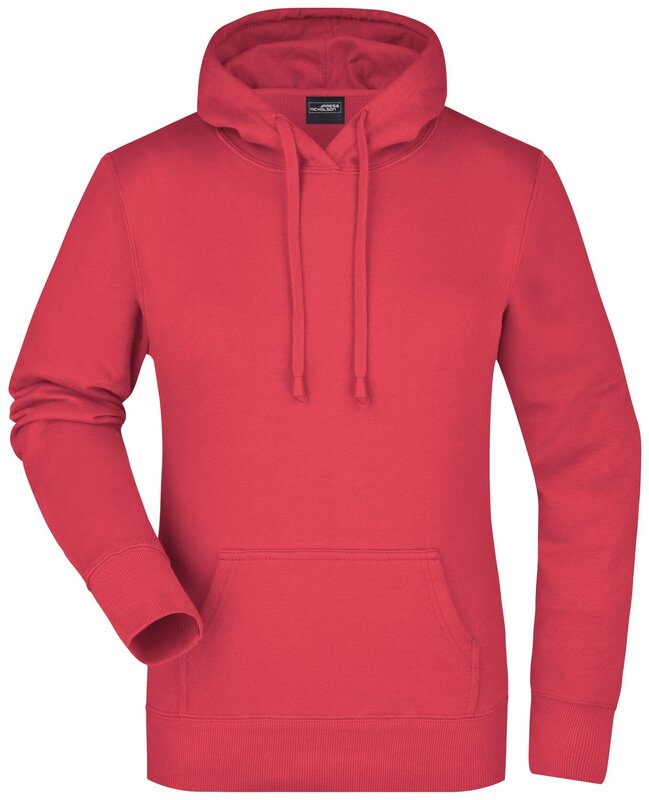 Klasická dámská mikina James & Nicholson s kapucí. Mikina je vyrobená z 80% bavlny a 20% polyesteru. Součástí mikiny je lemovaná kapuce se stahovací šňůrkou, dvojité prošití pro dlouhou životnost, manžety, lem u krku s elastanem, klokaní kapsa. Hmotnost: 320 g/m². Balení: 5/30 (ks v jednom sáčku / celkem ks v kartonu).