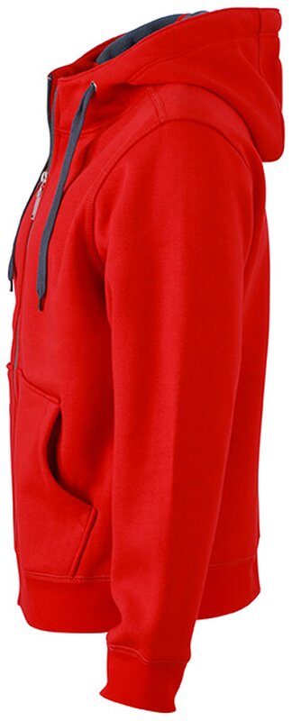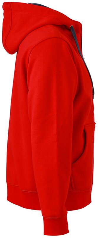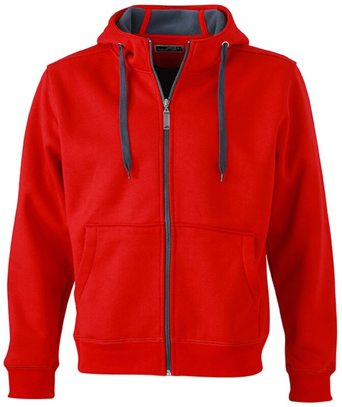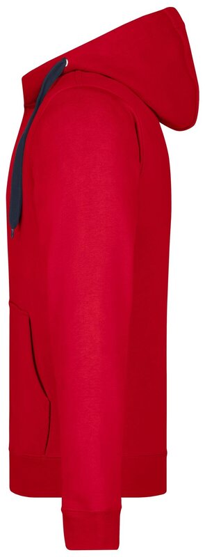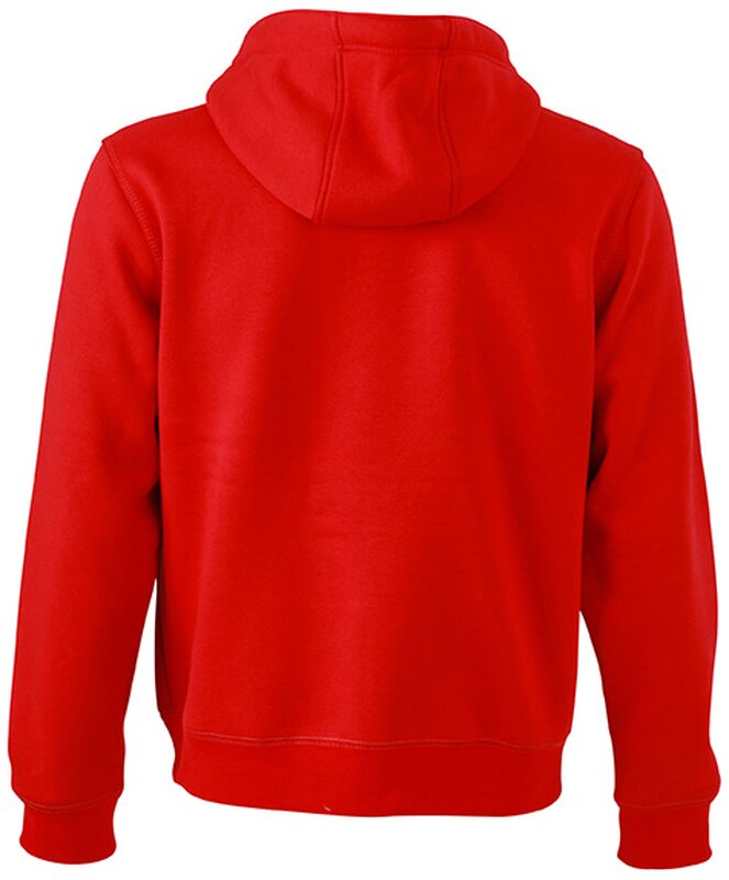 Pánská mikina James & Nicholson s kapucí. Vnější materiál: 100% bavlna. Podšívka: 100% polyester. Mikina je na zip, má šňůrky a vnitřek v kontrastní barvě. Kapuce s ochranou brady. Rukávy a pas s elastanem. Klokaní kapsa. Mikina má ploché švy. Hmotnost: 380 g/m². Balení: 1/25 (ks v jednom sáčku / celkem ks v kartonu).