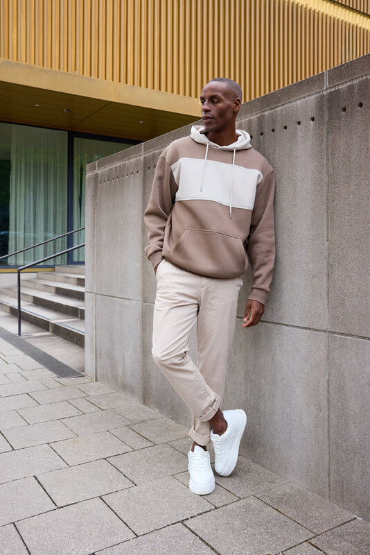 Mikina UNISEX Sweat-Hoody COLOUR-BLOCK 8051 Dusty modrá-světlá písková 052.317