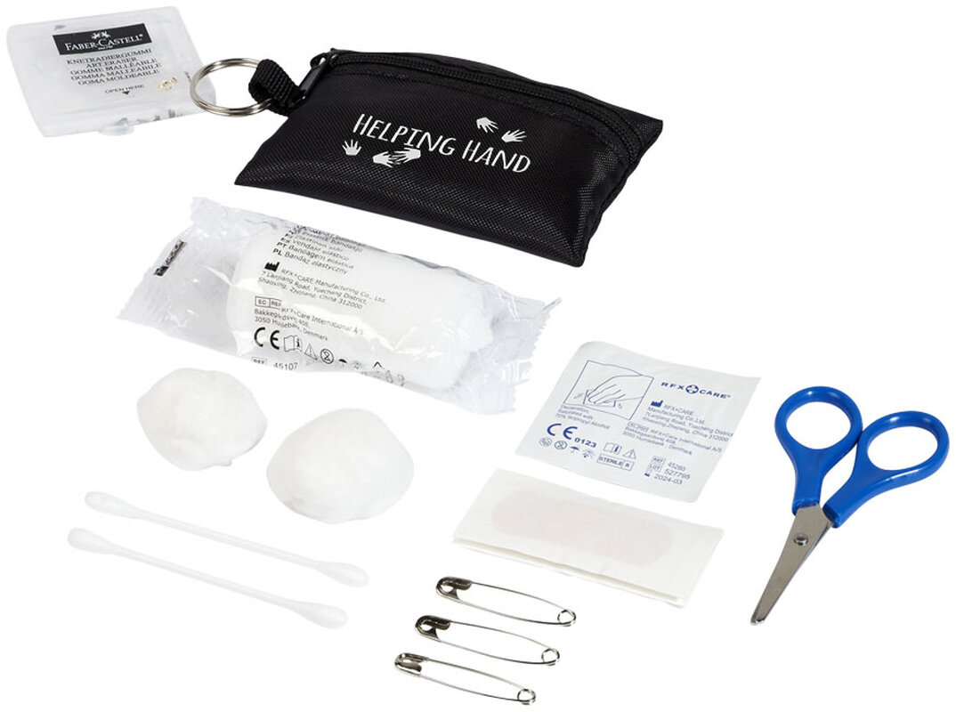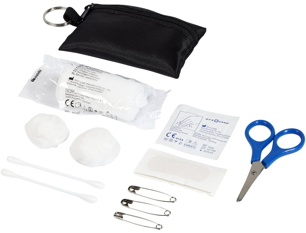 Mini lékárnička na klíčenku Valdemar. Ideální na cestování, festivaly, akce a další outdoorové aktivity. Rozepínací polyesterové pouzdro s klíčenkou. Sada se řídí normou 93/42/EHS na základě zamýšleného použití: „diagnostika, prevence, sledování, léčba nebo zmírňování onemocnění“. Toto zařízení patří do TŘÍDY I.
