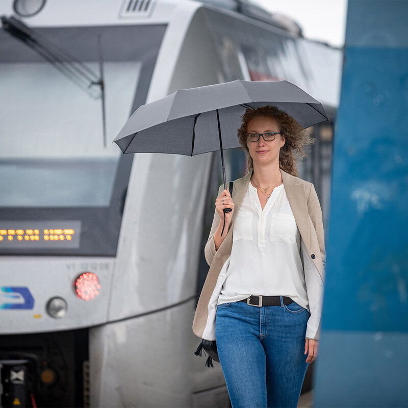 Skvělý malý deštník, který můžete vzít díky jeho složitelnosti opravdu kamkoliv. Vzhledem ke své stabilitě je vhodný i do větrného počasí. Plastová rukojeť vám zajistí pohodlí při přenosu deštníku. Průměr: 98 cm