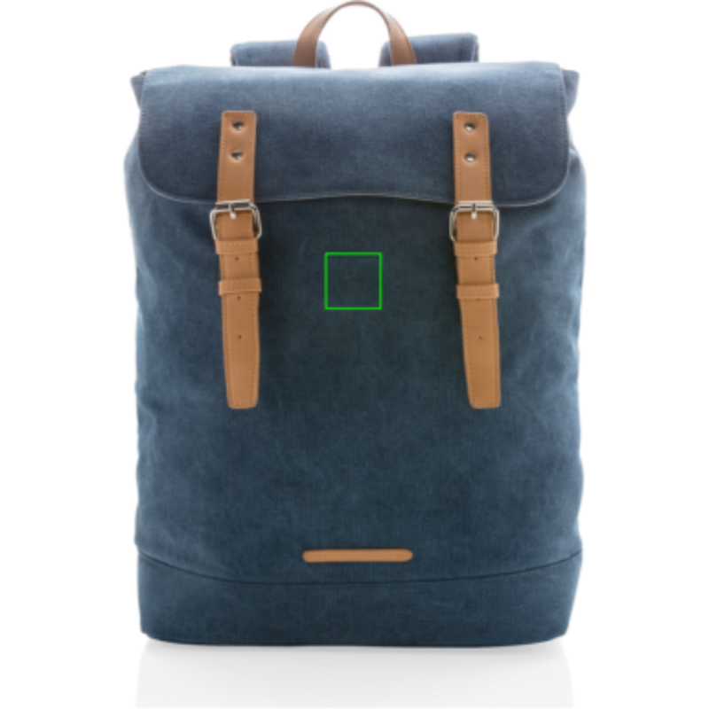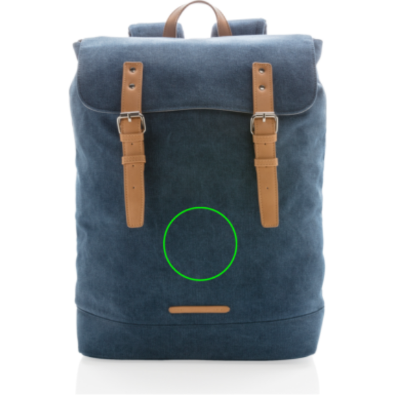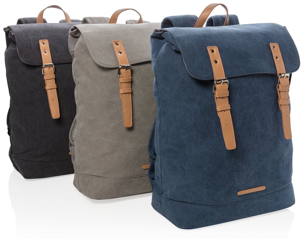 Textilní plátno (canvas) kombinuje praktickou odolnost a stylový design. Moderní batoh s polstrovaným oddílem až na 15" notebook. Zapínací klopa s dvěma magnetickými sponami z koženky. PVC free.