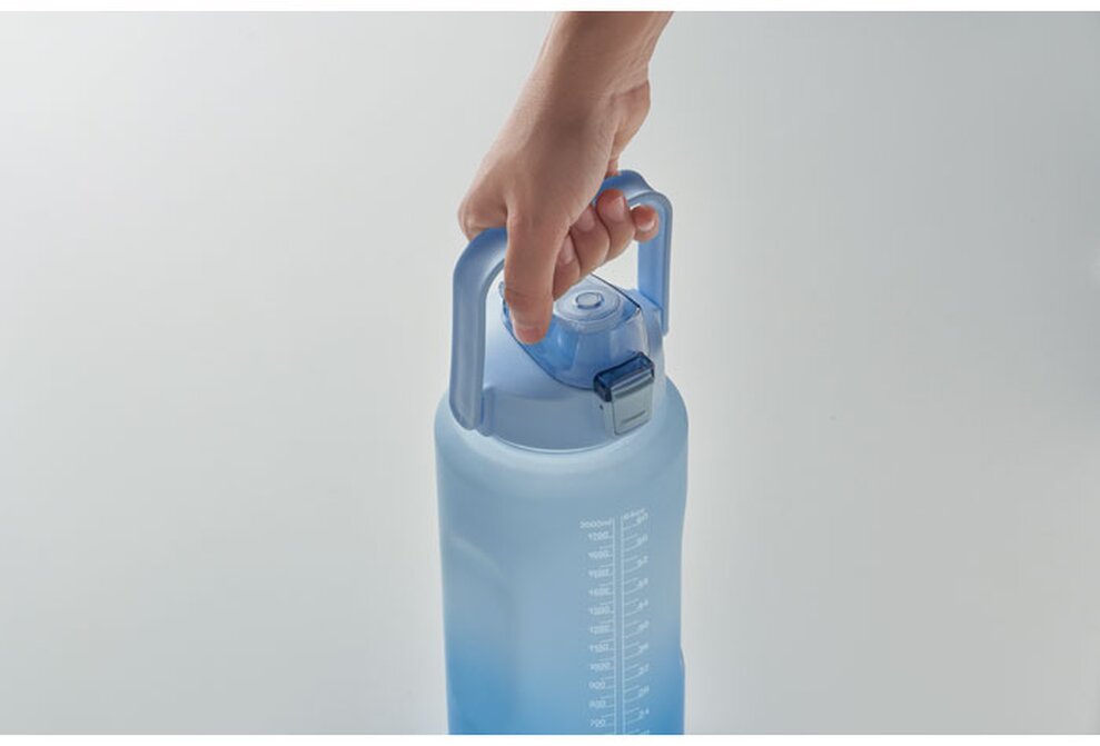 Velkokapacitní láhev s motivační stupnicí, která připomíná pravidelné pití během celého dne. Díky časovým značkám snadno uhlídáte doporučený denní příjem tekutin – stačí ji ráno naplnit a večer máte splněno.