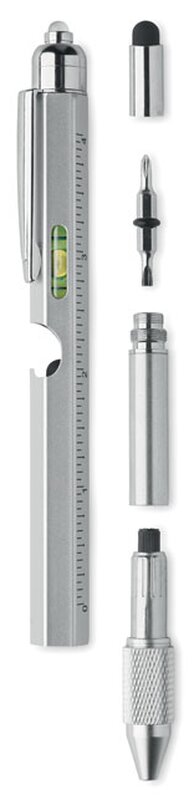 Multifunkční kovová propiska s nářadím RETOOL Matně stříbrná 039.907