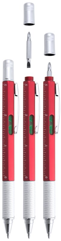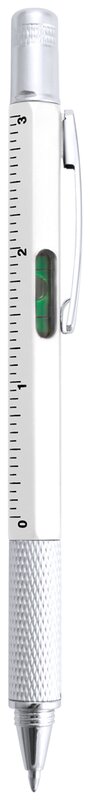 - 5v1: kuličkové pero s modrou náplní, plochý a křížový šroubovák, vodováha, pravítko (7 cm / 3 palce)