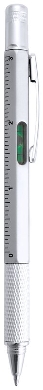 - 5v1: kuličkové pero s modrou náplní, plochý a křížový šroubovák, vodováha, pravítko (7 cm / 3 palce)