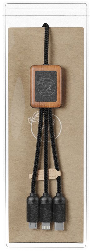 Nabíjecí bambusový kabel 3 v 1 SCX.design C29 Dřevěná 028.982