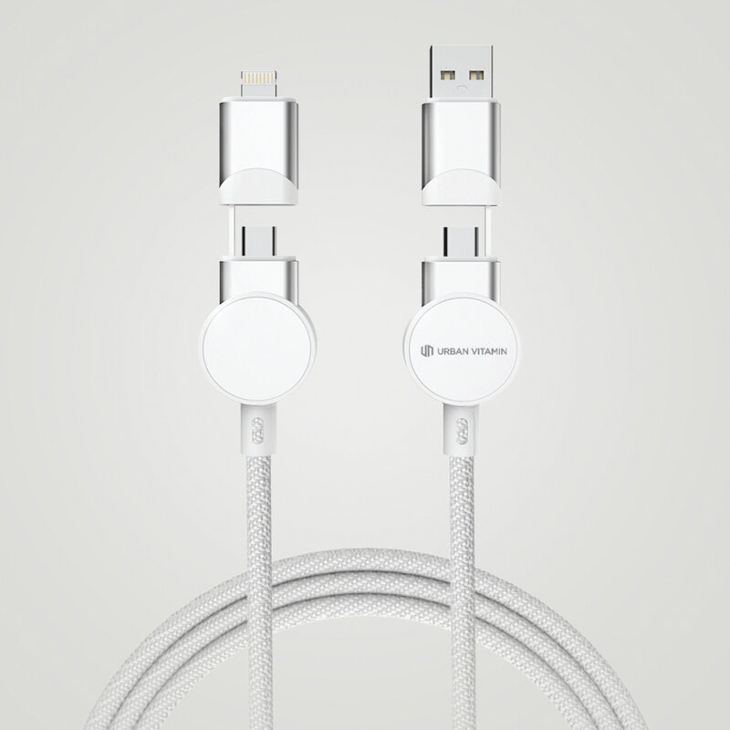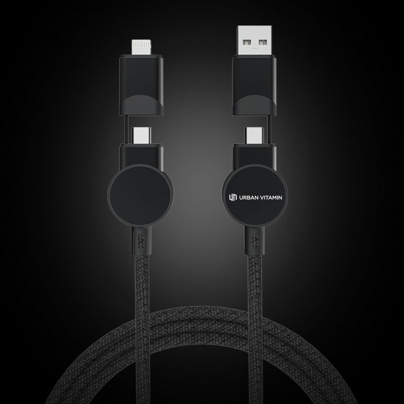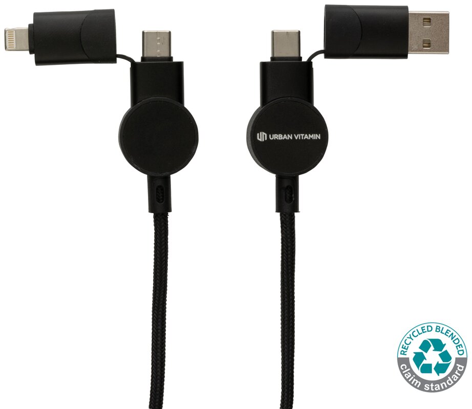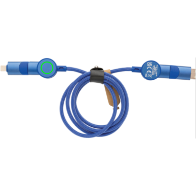 Nabíjecí kabel 6 v 1, jenž umožňuje nabíjení maximální rychlostí až do výkonu 45 W. Obashuje pouzdro vyrobené z recyklovaného TPE plastu s RCS certifikací, vnitřní část kabelu z recyklovaného TPE, vnější část z recyklovaného PET. Podíl použitého recyklovaného materiálu vzhledem k celkové váze produktu: 52 %. Kabel disponuje 5 konektory: USB C/USB A vstup, USB C/micro USB/iOS výstup. USB C je vhodné pro nabíjení moderních telefonů, ale i MacBooků. USB A má dvojí funkci (vstup i výstup) pro nabíjení jakéhokoliv zařízení z jakéhokoliv jiného zdroje. Produkt je vyroben kompletně bez PVC. Max výkon USB C do Lightning: 18W, max výkon USB C do USB C: 45W. Délka: 120 cm. Podporuje nabíjení i přenos dat.