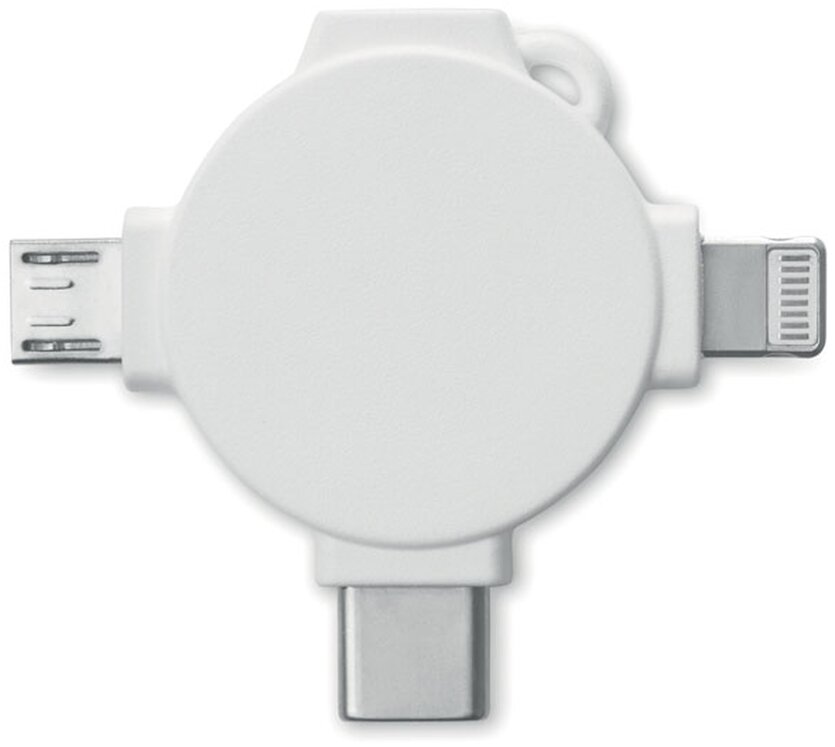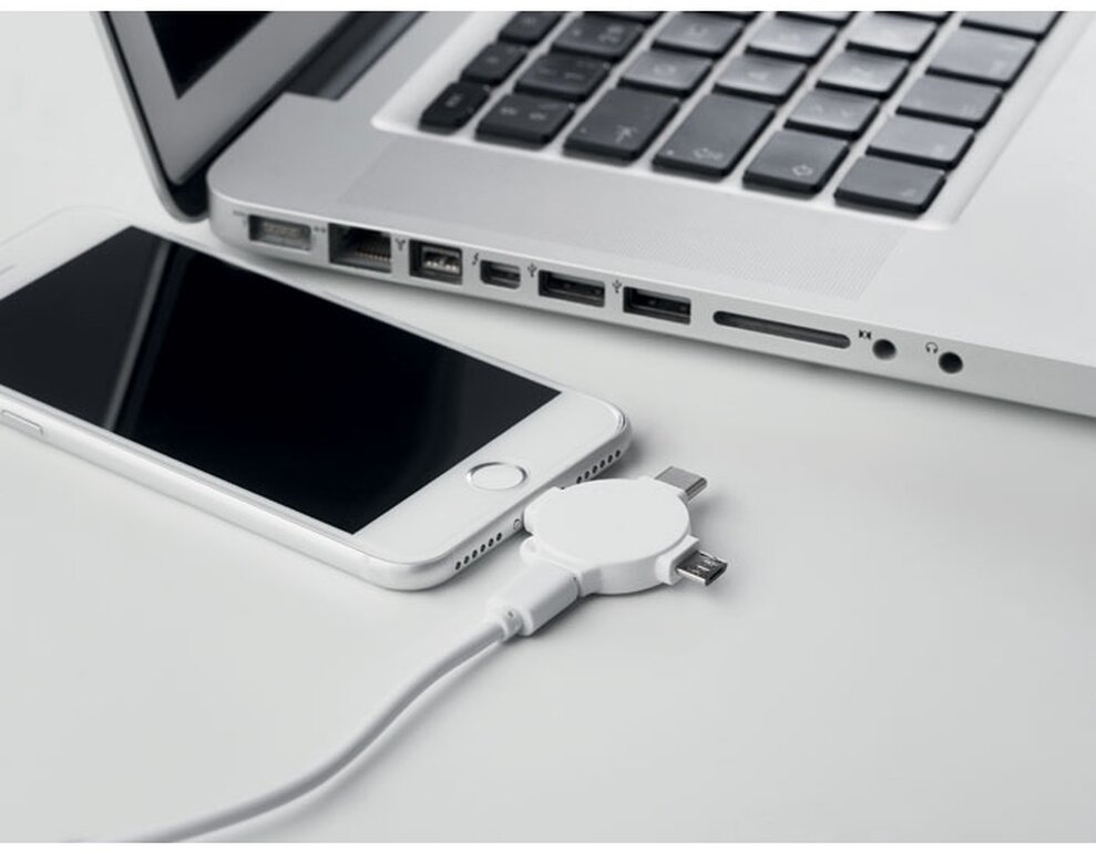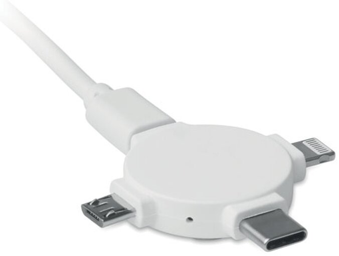 Nabíjecí kabel se třemi konektory. Micro-USB, type-c a konektorem pro zařízení s iOS. Ideální pro plnobarevný potisk.