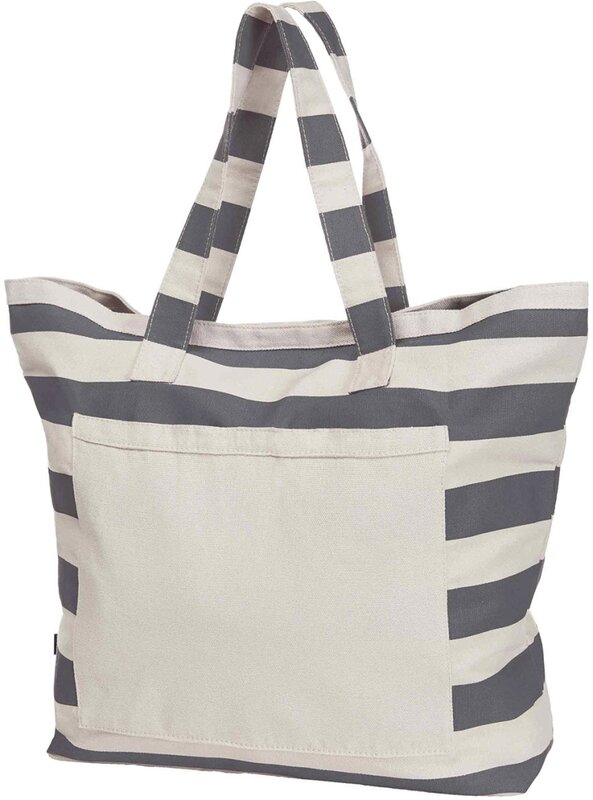 Velká bavlněná nákupní taška z pevného materiálu; prostorný střih s velkou přední kapsou; zip; dekorativní proužky