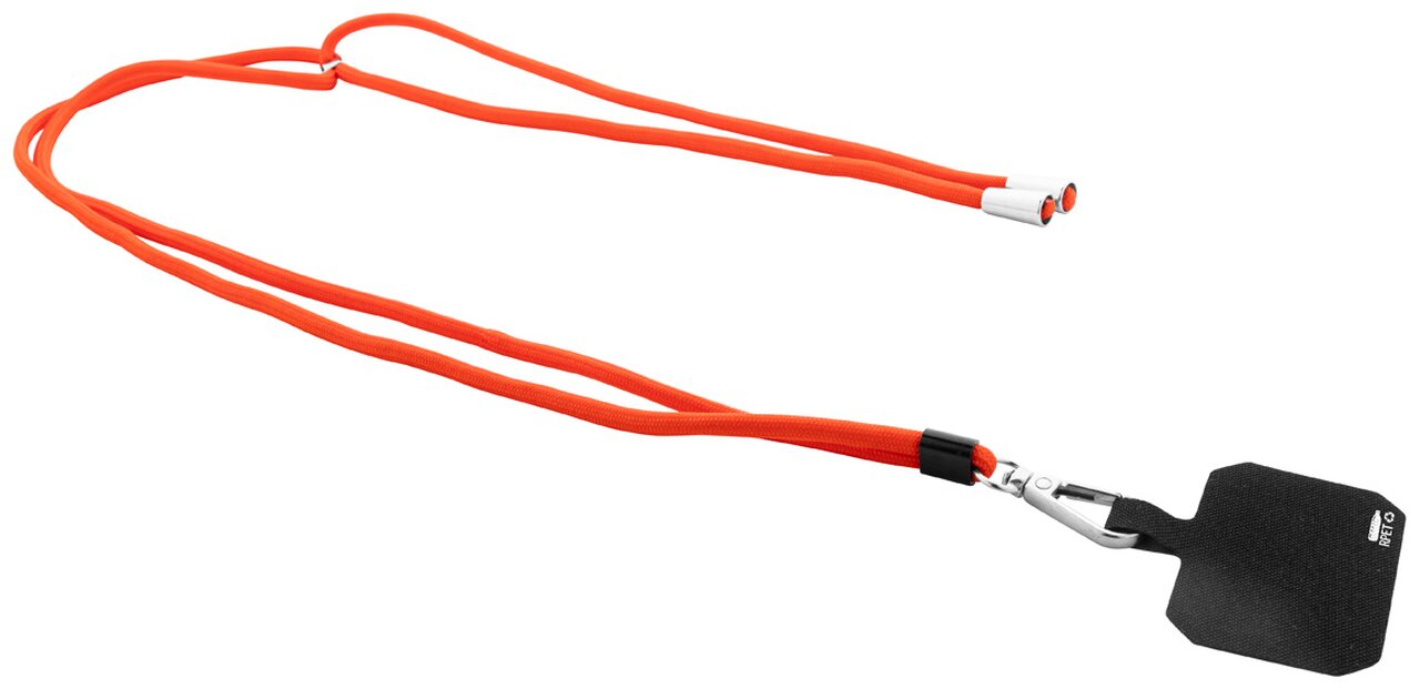 Nastavitelná crossbody šnůrka na mobil z ekologického RPET materiálu, ideální pro firemní potisk. Kovová karabina a textilní vložka do krytu telefonu zajišťují bezpečné připevnění telefonu. Nastavitelná délka umožňuje pohodlné nošení přes rameno nebo kolem krku. Perfektní pro handsfree používání telefonu při akcích, festivalech nebo každodenním nošení.