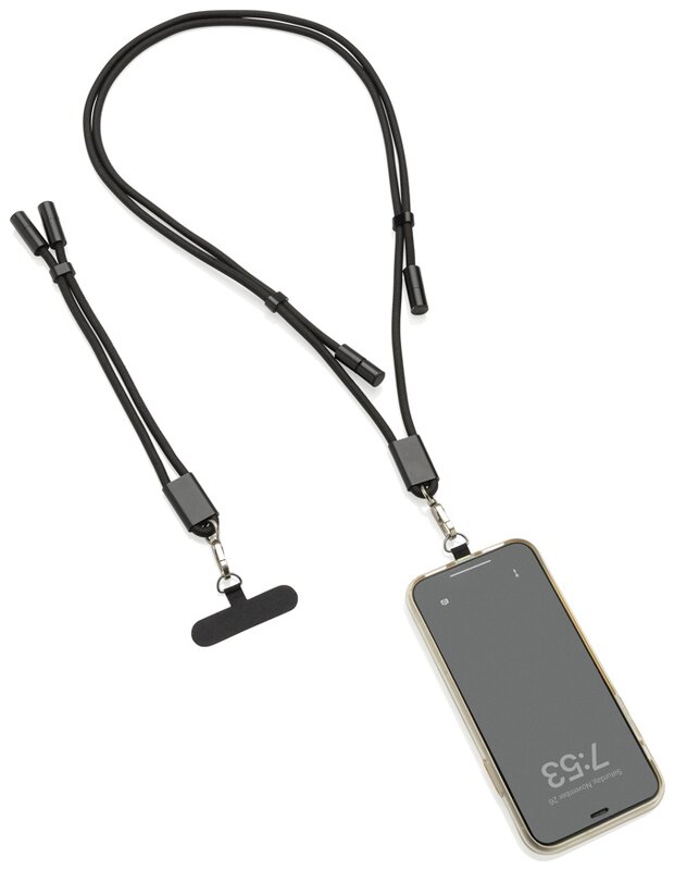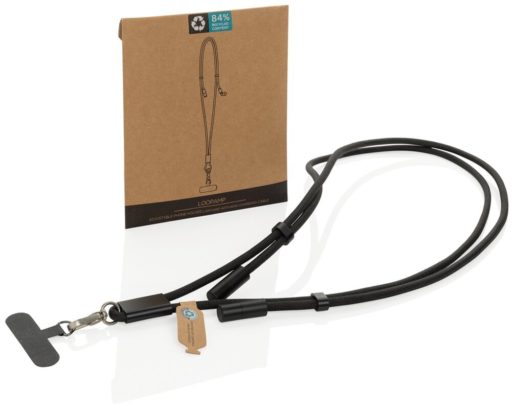 Nastavitelná šňůrka na telefonní LoopAmp z RPET Černá 055.845