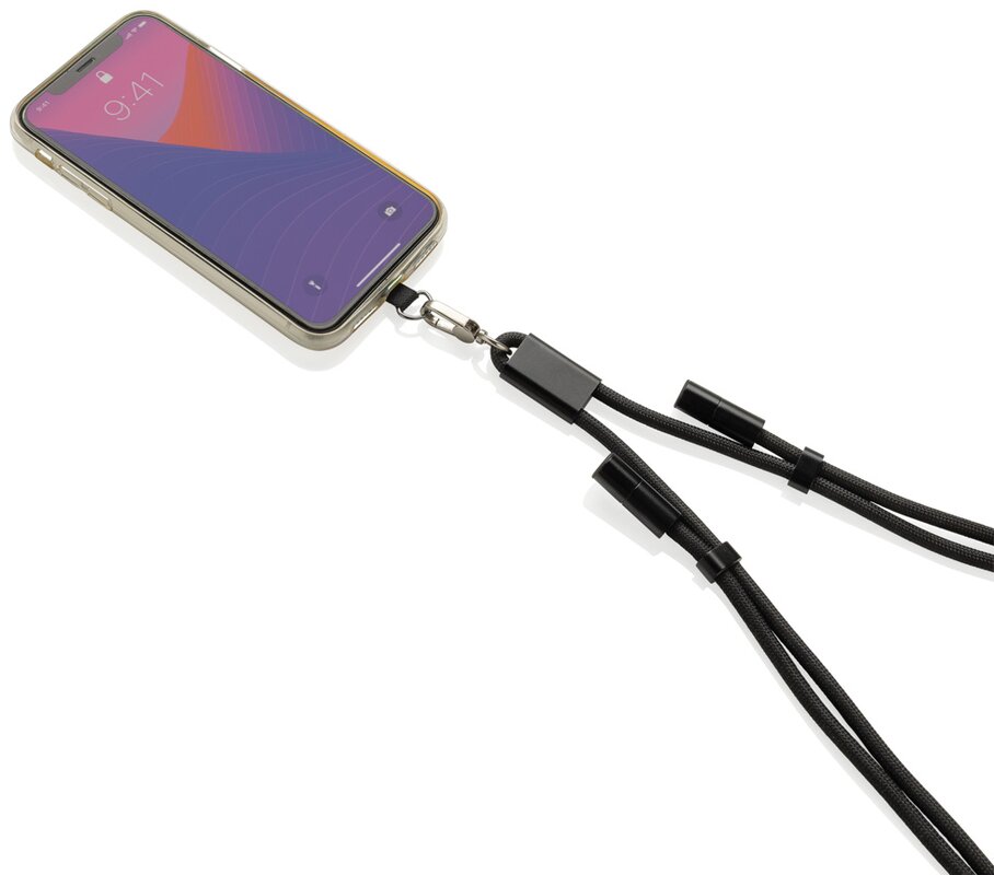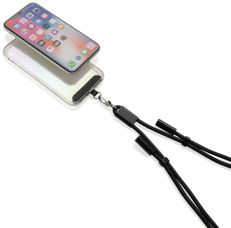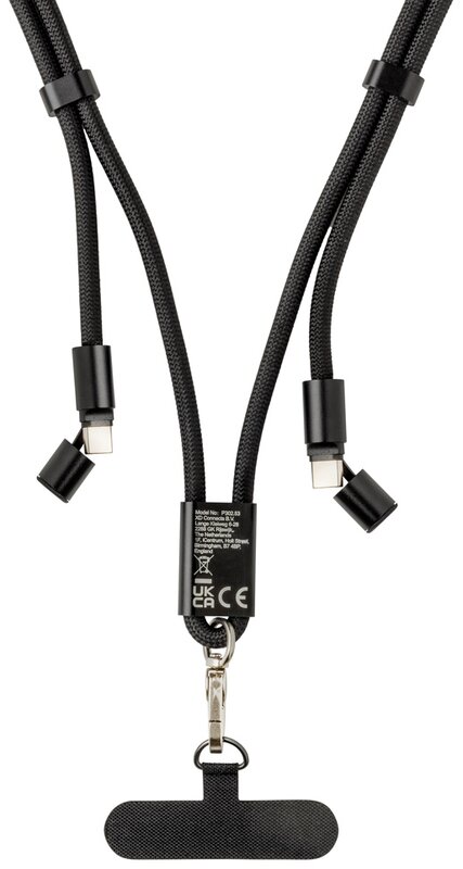 Šňůrka zároveň funguje jako výkonný USB-C nabíjecí kabel s výkonem až 60 W pro rychlé dobíjení telefonů, tabletů i notebooků a podporuje také přenos dat. Díky zesíleným konektorům a odolným materiálům je konstruována pro každodenní používání. Dodává se v ekologickém FSC certifikovaném obalu bez PVC.