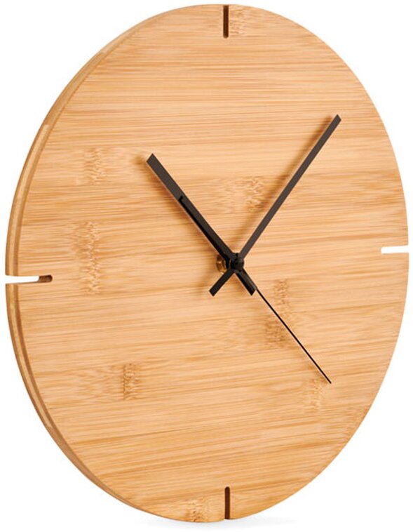 Nástěnné hodiny bez čísel. Produkt vyžaduje 1 baterii AA, která není součástí dodávky ani balení. Výrobek je z bambusu.